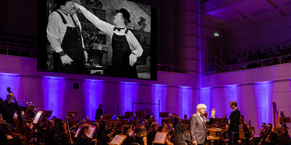 Stan Laurel und Oliver Hardy alias Dick & Doof sind DAS Komikerduo des frühen Films. In diesem Gesprächskonzert dringt Experimentalphysiker Prof. Dr. Metin Tolan tief in die Welt der unterhaltsamen Mechanik vor: Anhand zahlreicher Filmausschnitte entschlüsselt er mit Witz und wissenschaftlicher Präzision die physikalischen Prinzipien hinter den Slapstick-Szenen – vom Flaschenzug über den harmonischen Oszillator bis hin zu schwingenden Saiten. Das Dortmunder Universitätsorchester unter der Leitung von UMD Julian Pontus Schirmer erweckt dabei die Bilder auf der Leinwand mit filmmusikalischen Schätzen u. a. von Erich Wolfgang Korngold, Dmitri Schostakowitsch und Kurt Weill zum Leben.